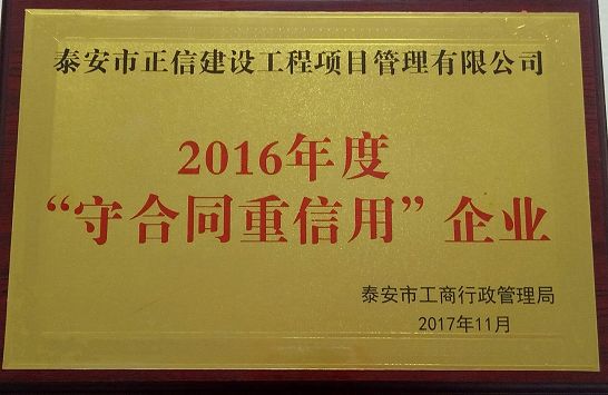 泰安電視臺3.15晚會頒發2016年度“守合同重信用”企業證書