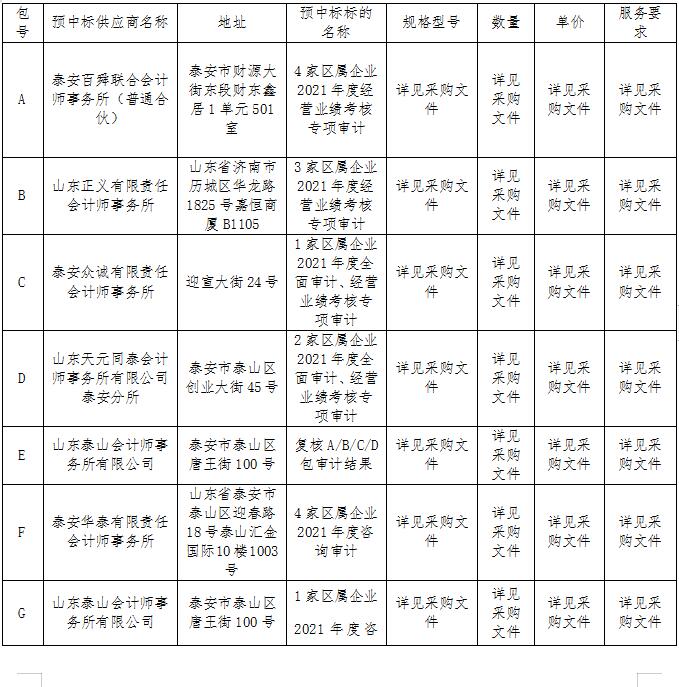 七、聯(lián)系方式 采購人:泰安市泰山區(qū)國有資產(chǎn)監(jiān)督管理局 地址:泰安市泰山區(qū)岱道庵路555號 聯(lián)系人:張文力 聯(lián)系方式:0538-8260618 采購代理機構:泰安市正信建設工程項目管理有限公司 地址:泰安市靈山大街華偉家園A座8層 聯(lián)系方式:0538-8274170 八、公告日期:2022年6月3日-2022年6月5日