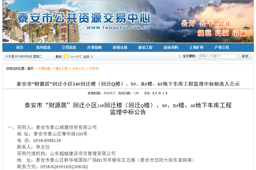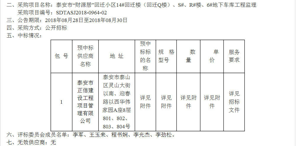 泰安市“財源居”回遷小區14#回遷樓(回遷Q樓)、S#、R#樓、6#地下車庫工程
