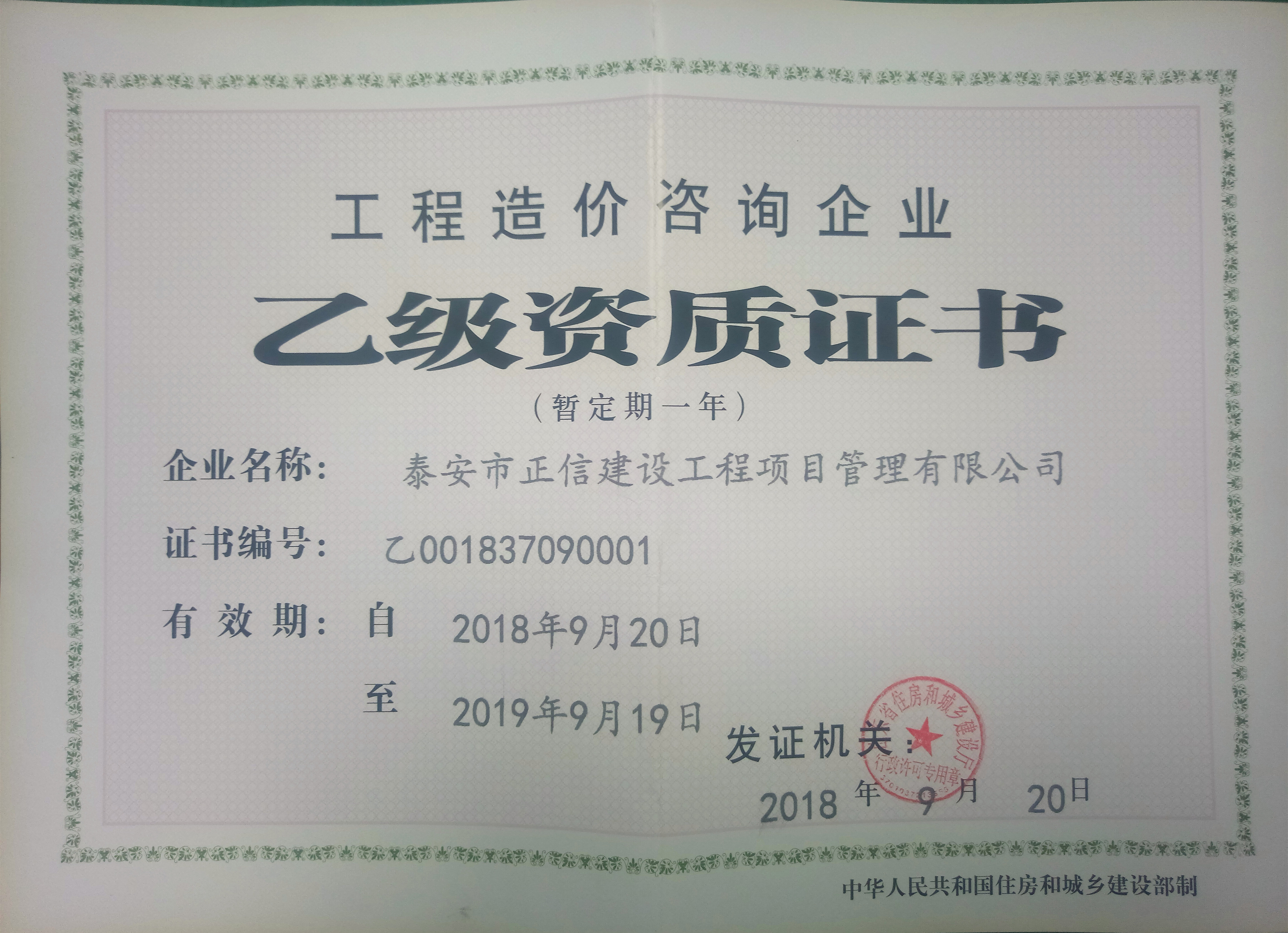 我公司取得工程造價(jià)咨詢乙級資質(zhì)